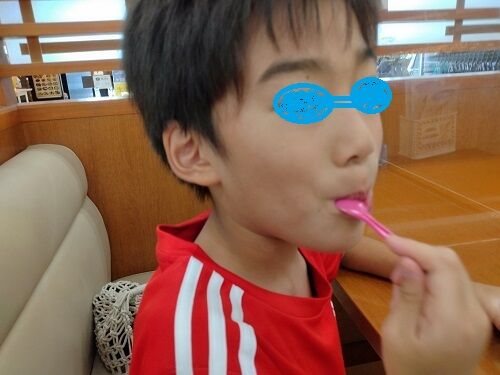 ほしい物をゲットでき喜んではいたけれど、まだまだ遊び足りない様子に、アイスで釣った(笑)