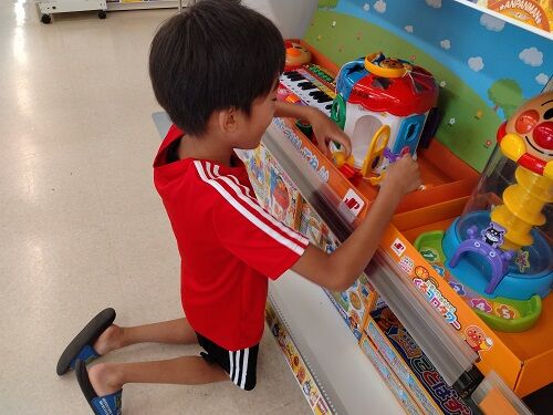 一息つけたけど、帰りたくないマナくんは無料で遊べるコーナーへ。