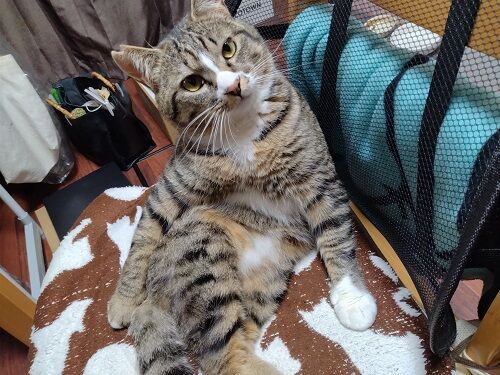 動物病院への受診や帰省の際の車中では、キャリーバッグに入ることなく助手席でおとなしくしていた。