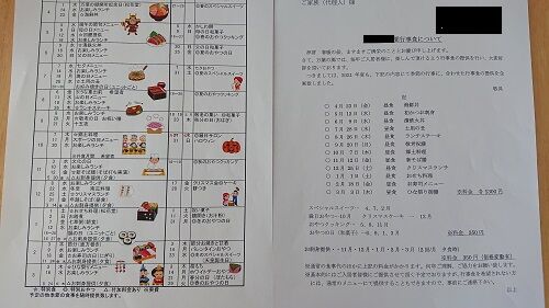 年間行事食予定表を渡された。