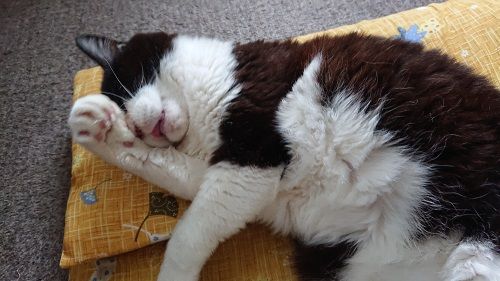ねこは前脚で顔を撫でるけれど、その際に脚が耳を超すとてんどが良いとなるようで(昔の人が言っていたという美代さんの持論)桐ちゃんはいつも美代さんに褒められていたヾ(=^▽^=)ノ